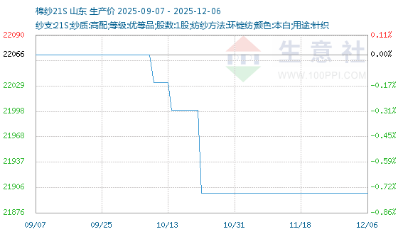 12月5日生意社棉紗21S基準價為21900.00元/噸