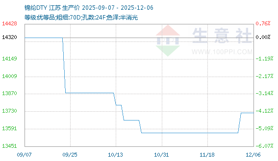 12月4日生意社錦綸DTY基準價為13720.00元/噸